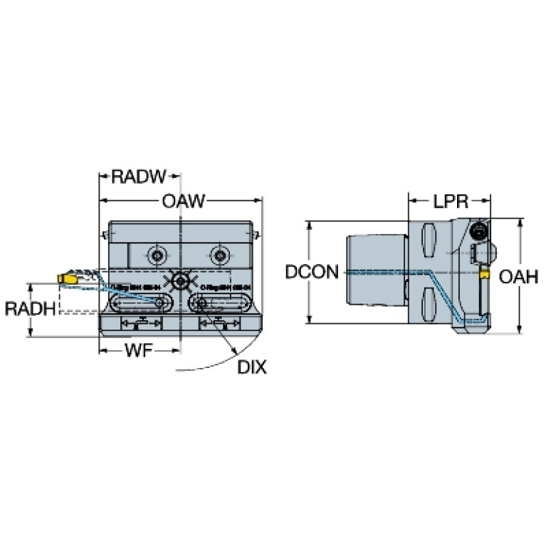 5 - With coolant supply (discharge) in axial in direction, diagonal adjustable