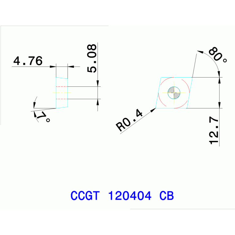 insert, Positive 80° PCD Insert - 7° clearance (peripheral grinded) PCD with Chip breaker