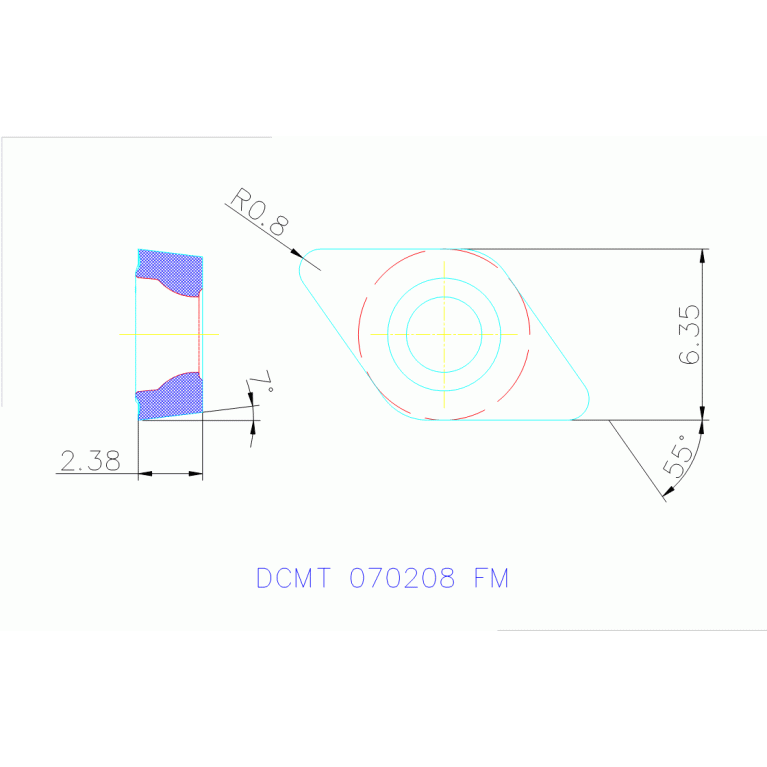 insert, Positive 7° clearance 55° rhombic Insert for semi finishing and medium machining