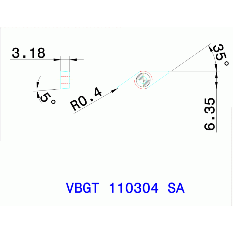 insert, Positive 35° Insert - 5° clearance (peripheral grinded) for finishing