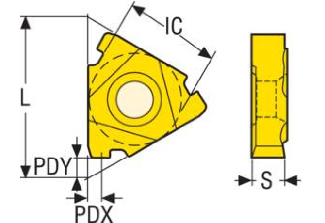 202-08 - Lay-down threading insert, triangle shape, three cutting edges, one tooth