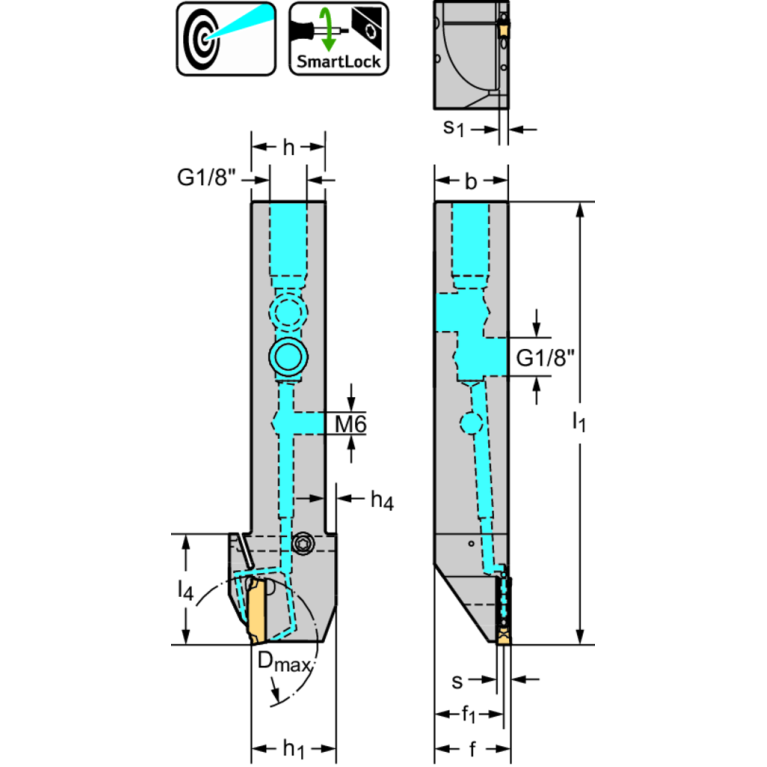 7 - With coolant supply (discharge), axial groove at shank