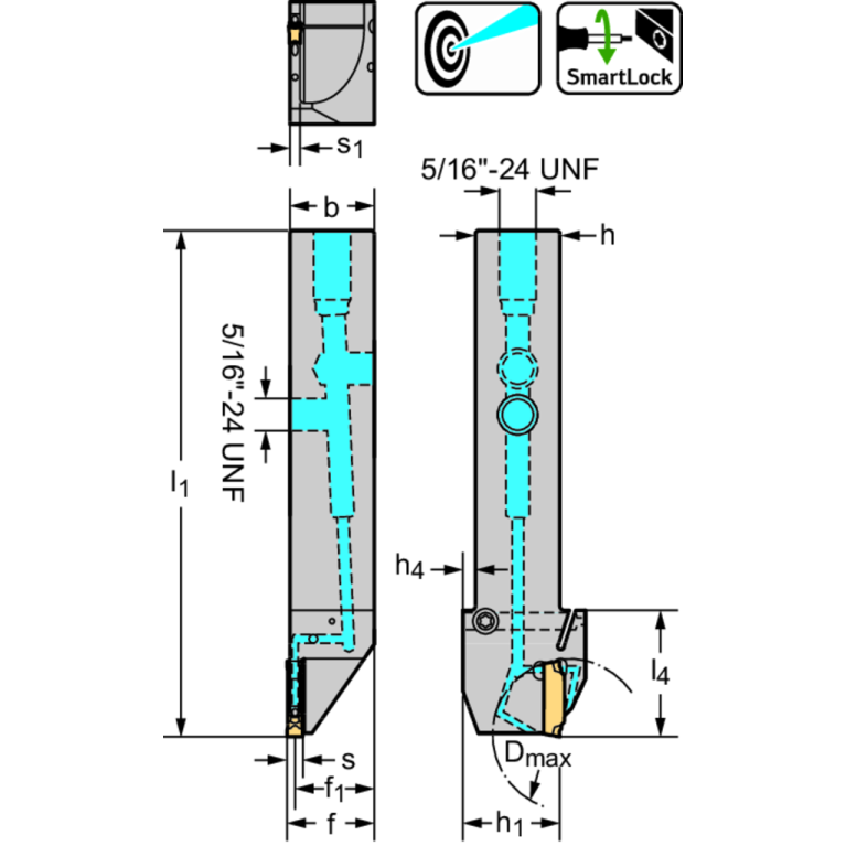 7 - With coolant supply (discharge), axial groove at shank