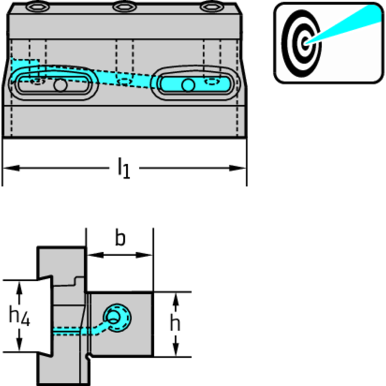 1 - With Coolant entry, axial concentric