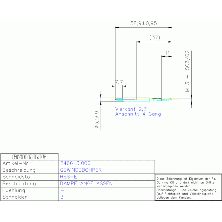 HSS-E DAM, MA-GBO M 3 DIN371RH B 6G ROT