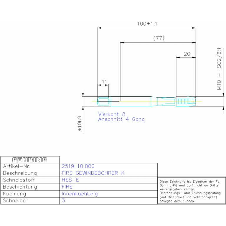 HSS-E FIRE MA,-GBO KI M10 DIN 371HB