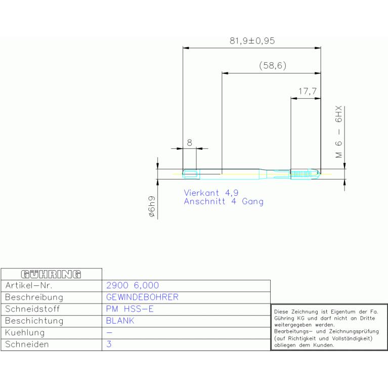 PM HSS-E MA-GBO M 6 DIN 371 TI - B