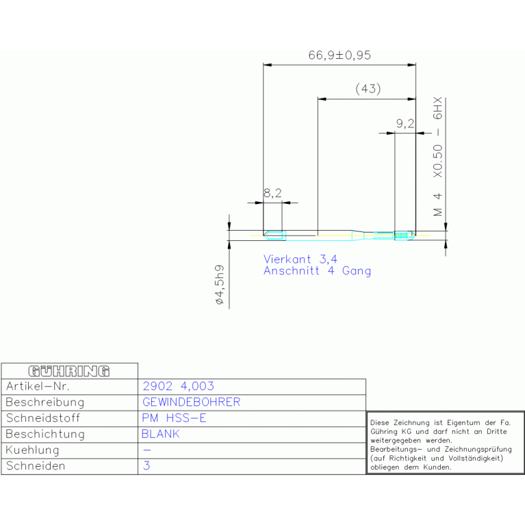 PM HSSE MAGBO M 4X0,50 DIN371 TI-B