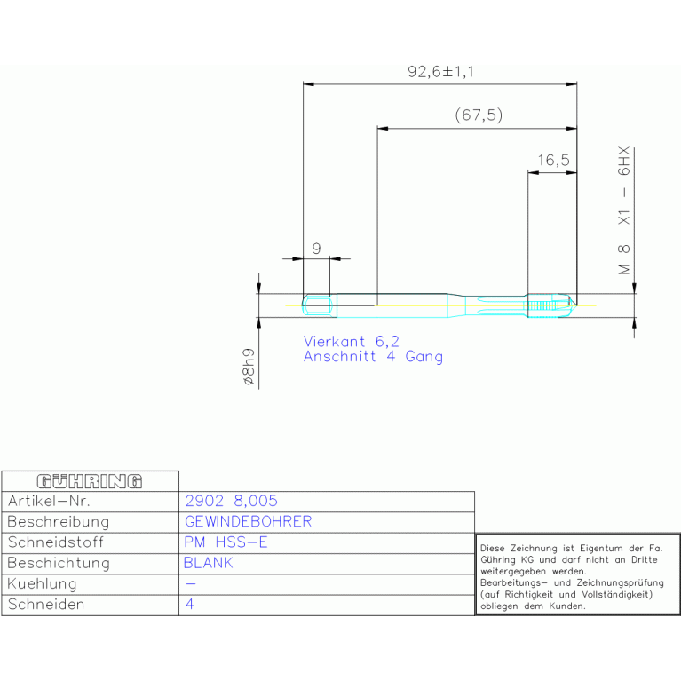 PM HSSE MAGBO M 8X1,00 DIN371 TI-B
