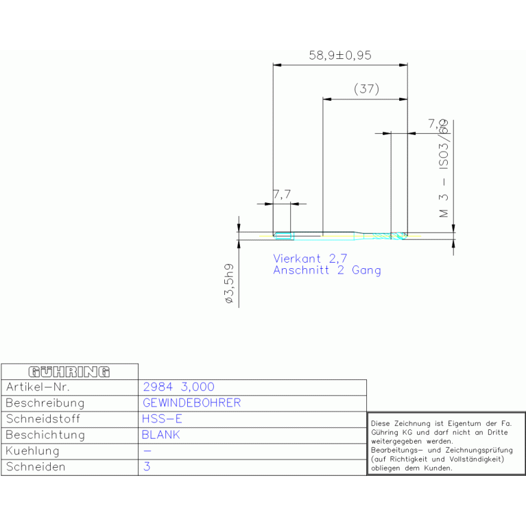 HSS-E BLA, MA-GBO M 3 DIN371H R40 C 6G