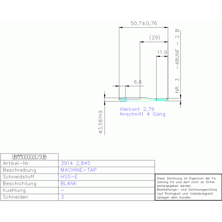 HSS-E BLANK ANSI GBO UN-B NR, 4 -48 UNF