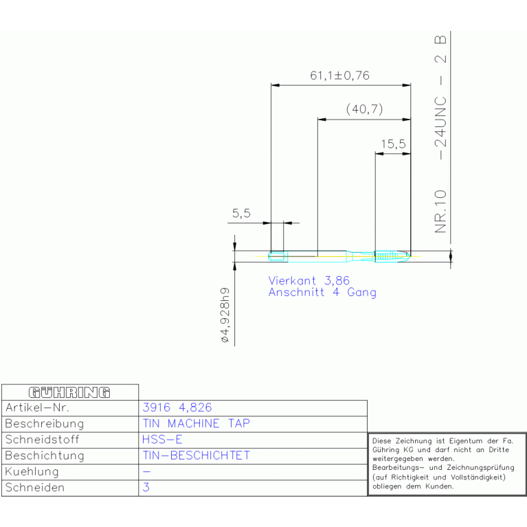 HSS-E TIN ANSI MA-GBO UN-B NR,10 -24 UNC
