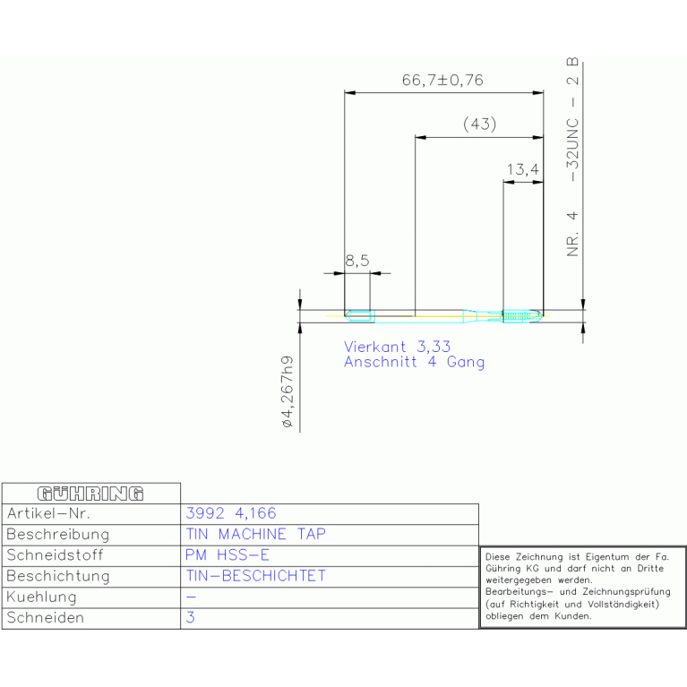 PM HSSE S-GBO H-B NR, 8 -32 UNC DIN/ANSI