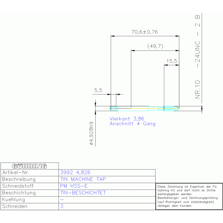 PM HSSE S-GBO H-B NR,10 -24 UNC DIN/ANSI