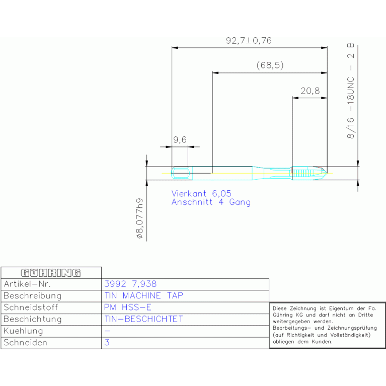 PM HSSE S-GBO H-B 5/16-18 UNC DIN/ANSI
