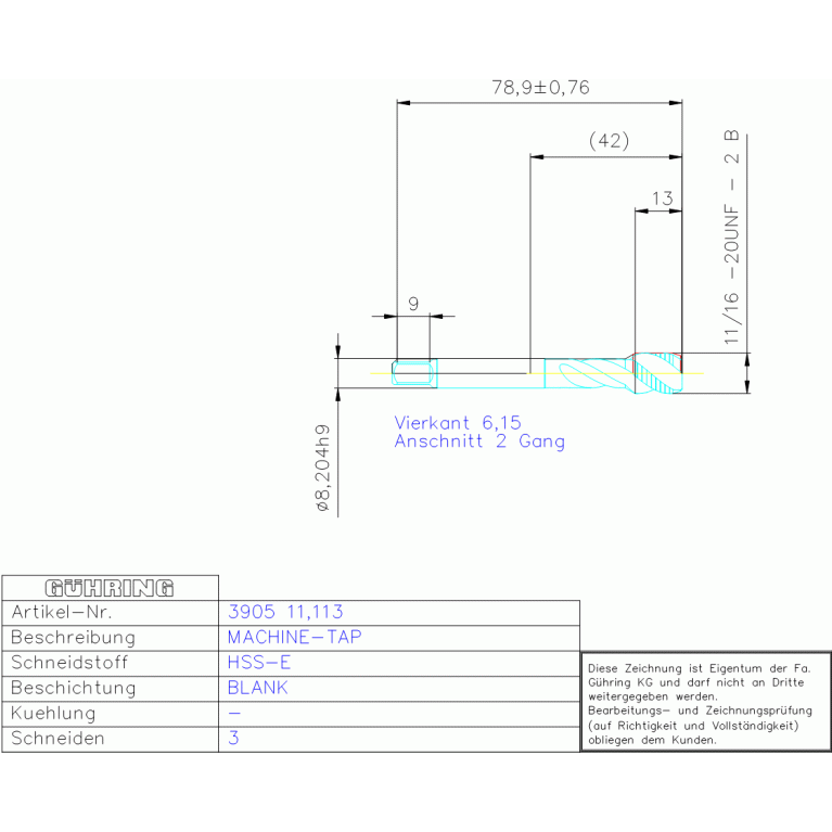 HSS-E ANSI MA-GBO 7/16-20 UNF 40°