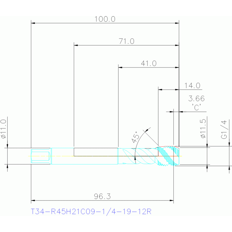 301-01 - Thread cutting tap with offset shank