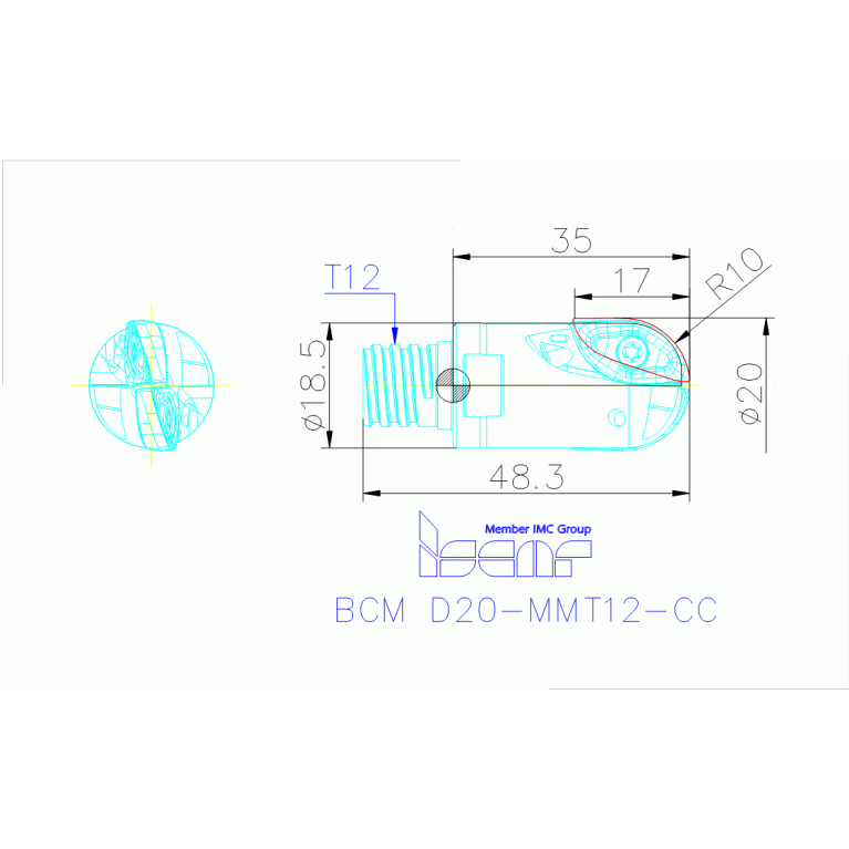 Ball Nose Endmills with MULTI-MASTER Threaded Adaptation Carrying Tangent Straight Edge Inserts for Finish Profiling