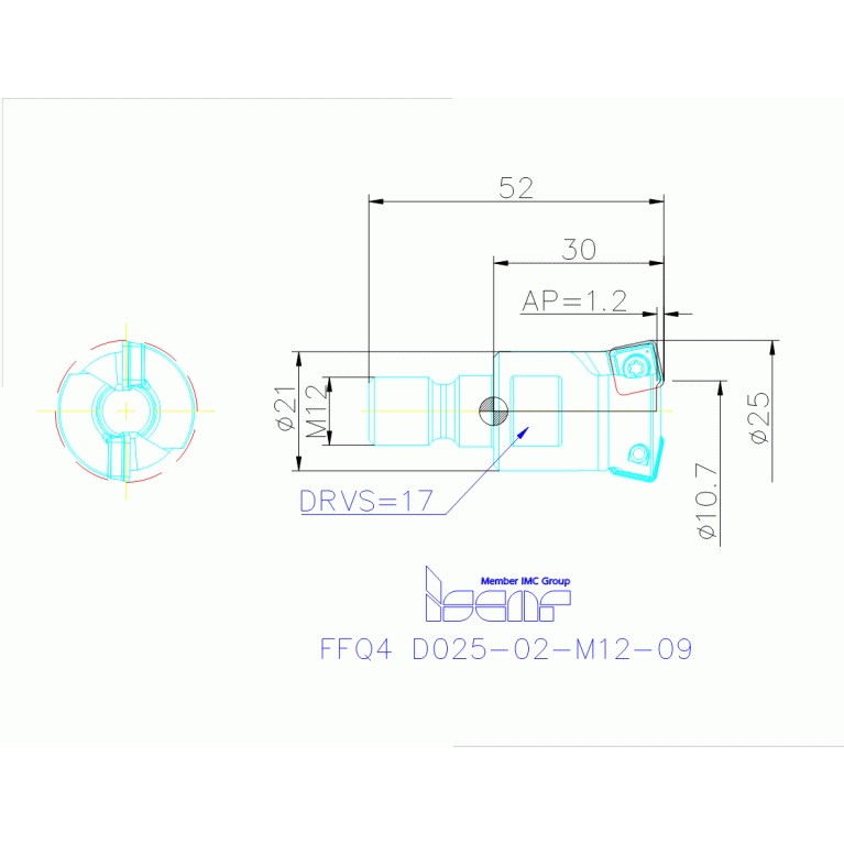 Fast Feed Endmills with FLEXFIT Threaded Adaptation Carrying Single-Sided Inserts with 4 Cutting Edges