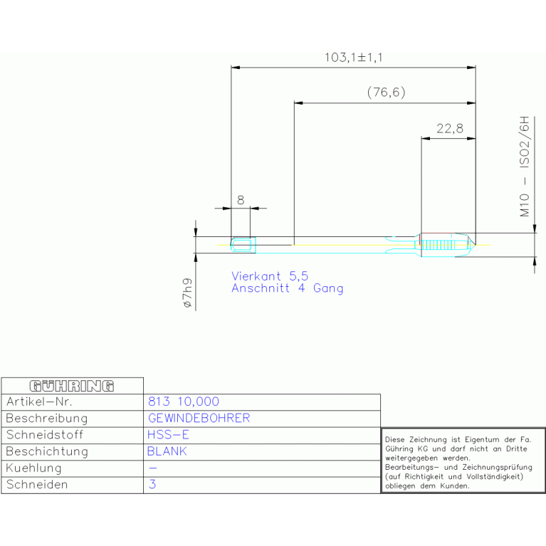 HSS-E MASCHINEN-GBO M 10 DIN 376RN FORM