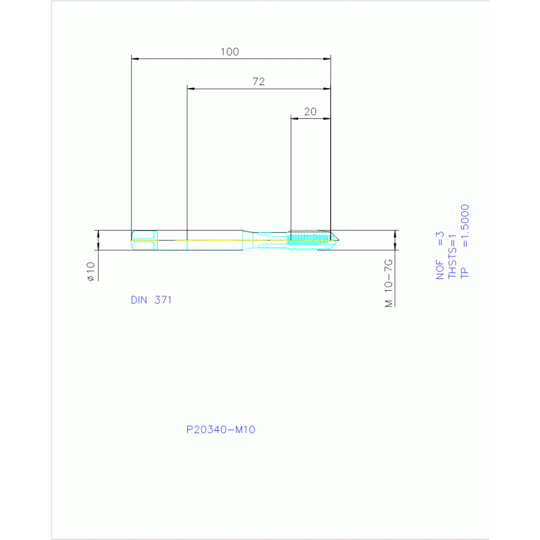 301-02 - Thread cutting tap with reinforced shank