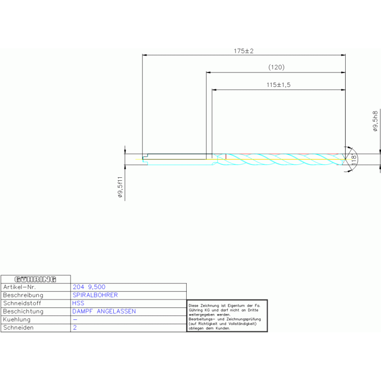 HSS SPIRALBOH, LANG 9,500 DIN 340RN M.L.