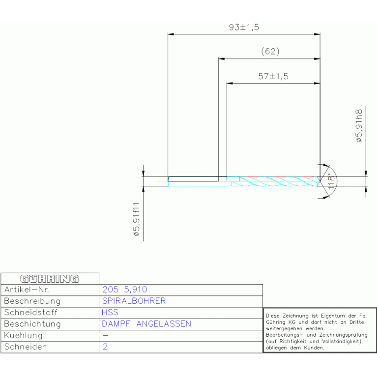 HSS SPIRALBOH, KURZ 5,910 DIN 338RN ZYL