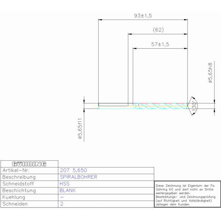 HSS SPIRALBOH, KURZ 5,650 DIN 338RW ZYL
