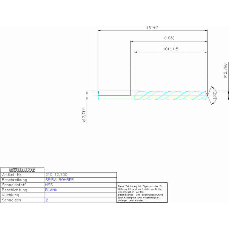 HSS SPIRALBOH, KURZ 12,700 DIN 338LW ZYL