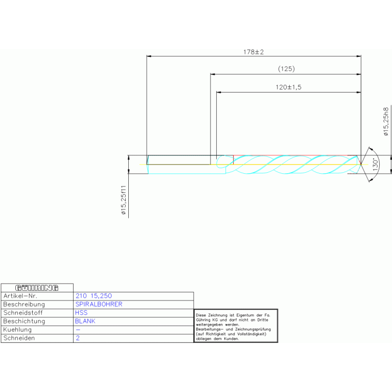 HSS SPIRALBOH, KURZ 15,250 DIN 338LW ZYL
