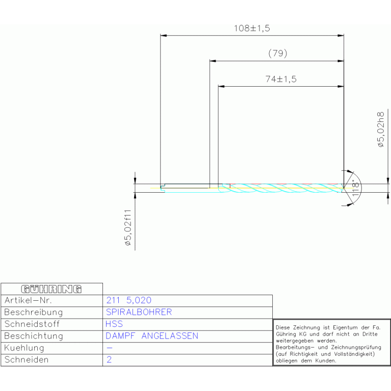 HSS BOHRBUCHSENBOHR, 5,020 DIN 339RN ZYL