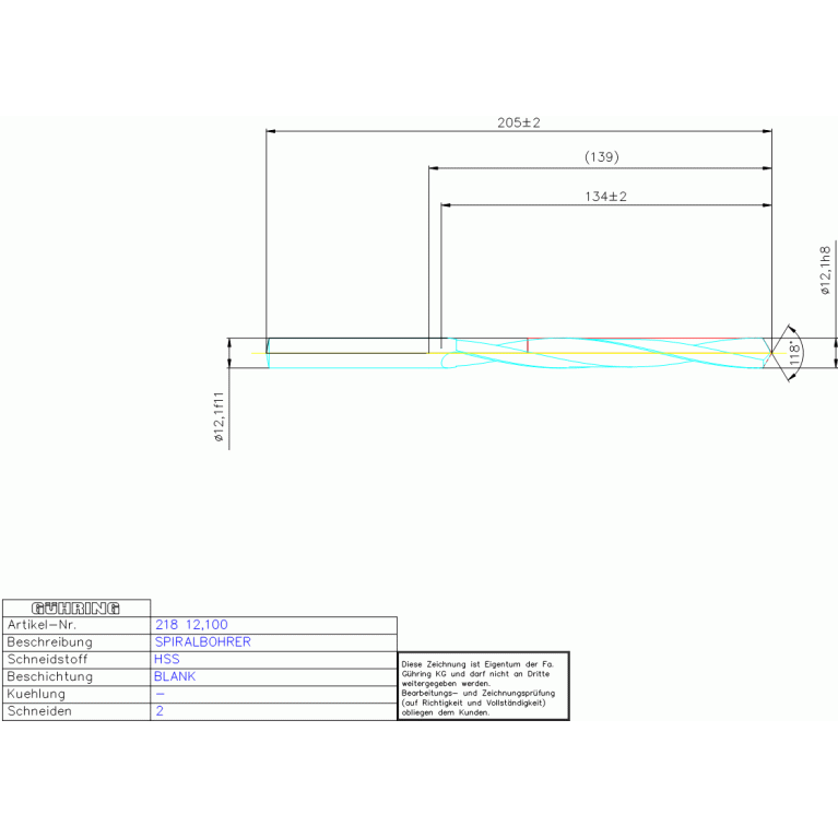 HSS SPIRALBOH, LANG 12,100 DIN 340RH ZYL