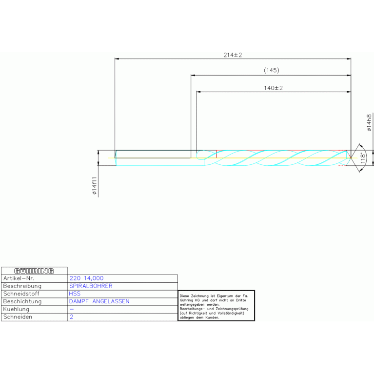 HSS SPIRALBOH, LANG 14,000 DIN 340LN ZYL