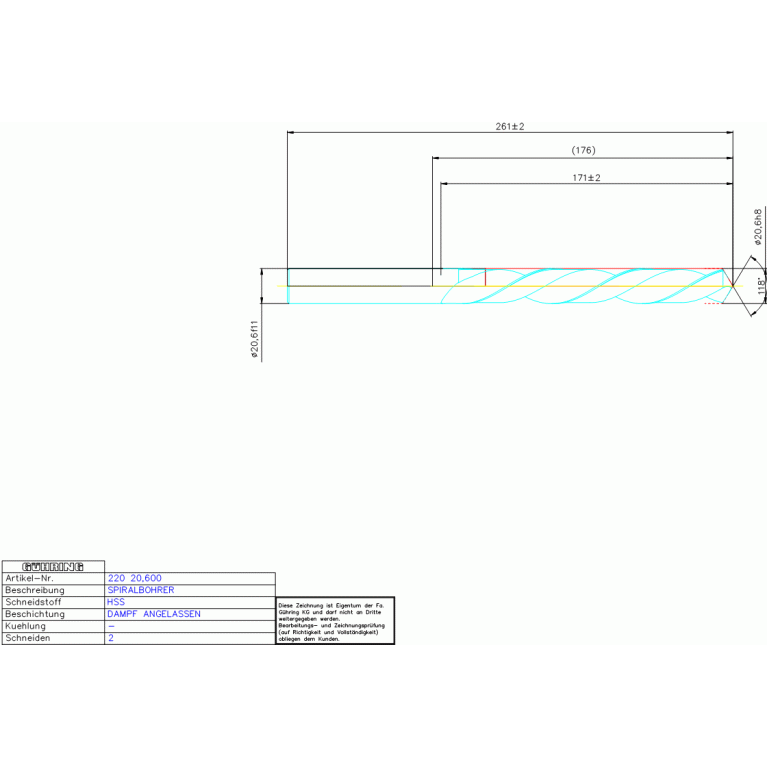 HSS SPIRALBOH, LANG 20,600 DIN 340LN ZYL