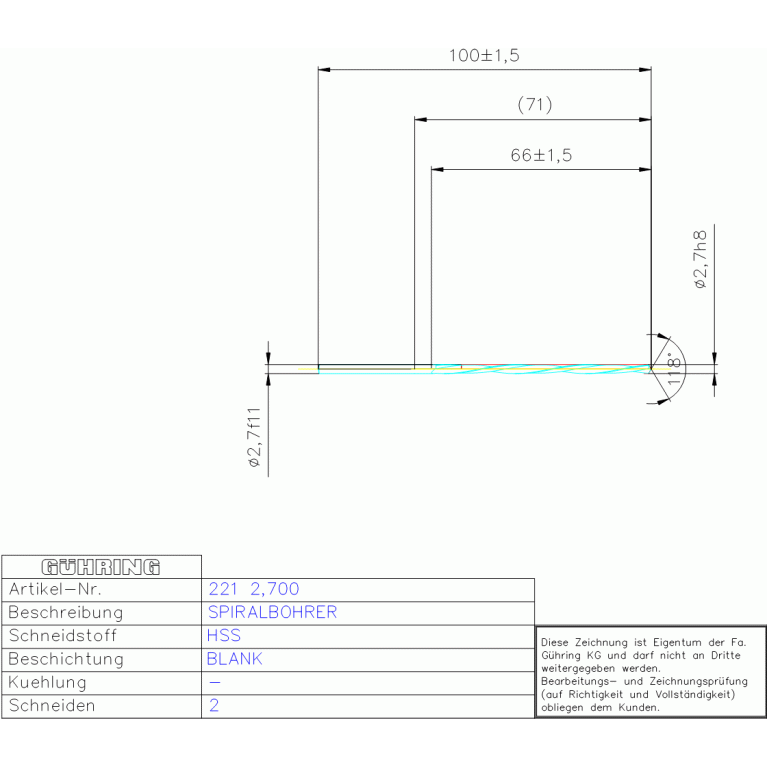 HSS SPIRALBOH, LANG 2,700 DIN 340LH ZYL