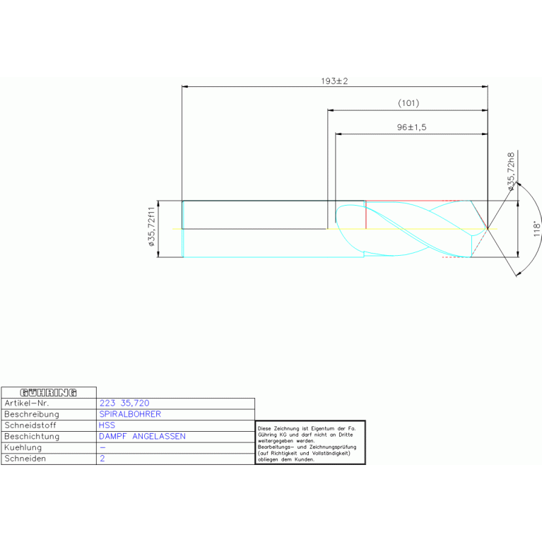 HSS SPIRALBOHRER 35,720 DIN 1897RN ZYLEX