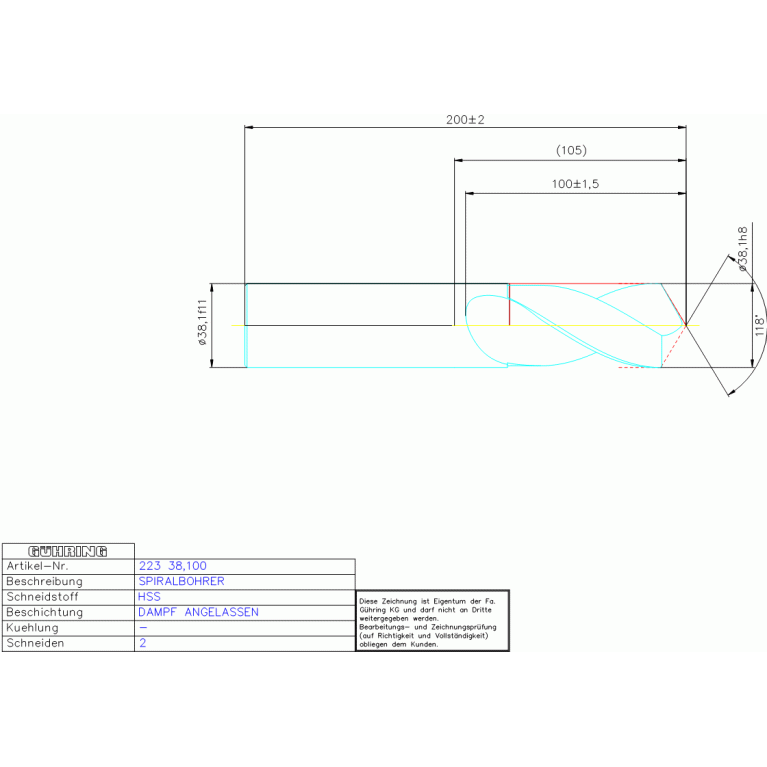 HSS SPIRALBOHRER 38,100 DIN 1897RN ZYLEX