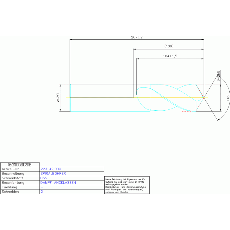 HSS SPIRALBOHRER 42,000 DIN 1897RN ZYLEX