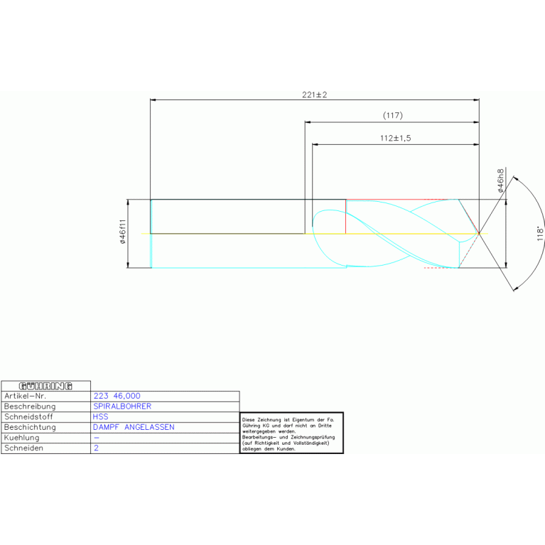 HSS SPIRALBOHRER 46,000 DIN 1897RN ZYLEX