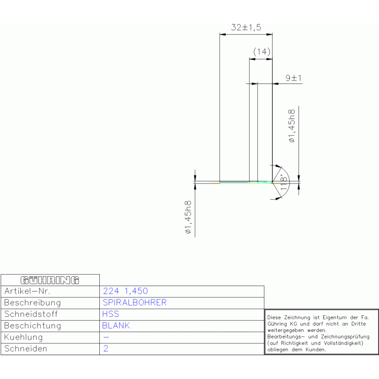 HSS SPIRALBOHRER 1,450 DIN 1897RH ZYLEXT