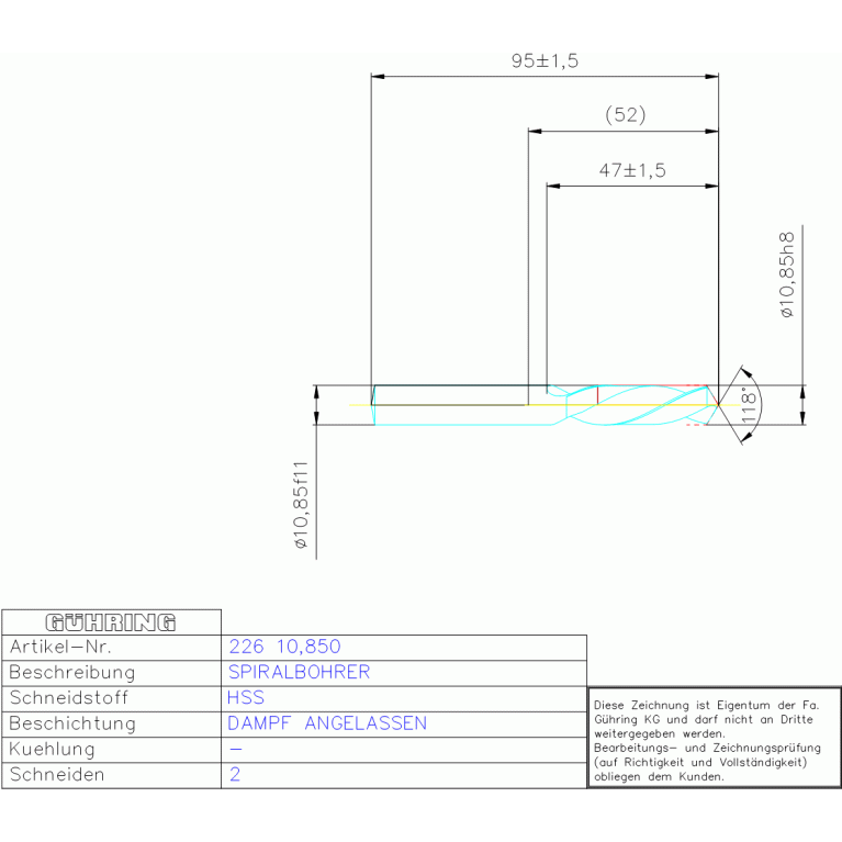 HSS SPIRALBOHRER 10,850 DIN 1897LN ZYLEX