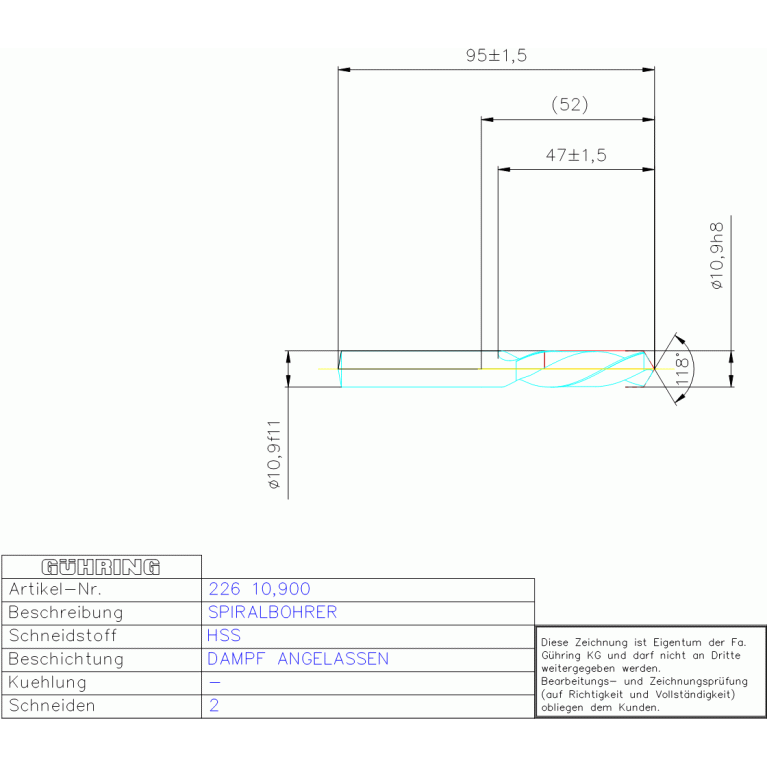 HSS SPIRALBOHRER 10,900 DIN 1897LN ZYLEX