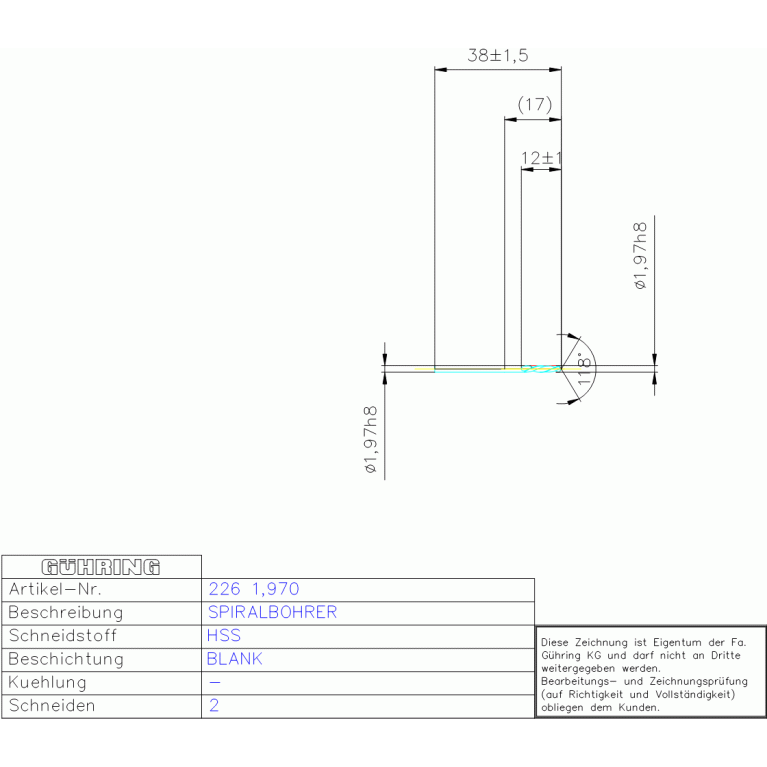 HSS SPIRALBOHRER 1,970 DIN 1897LN ZYLEXT