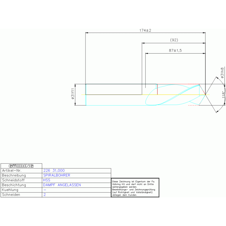 HSS SPIRALBOHRER 31,000 DIN 1897LN ZYLEX