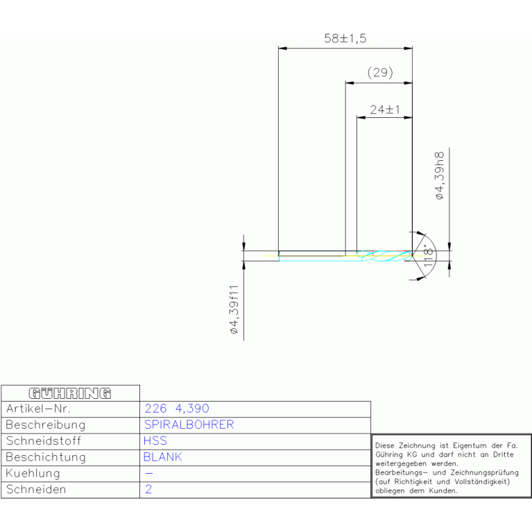 HSS SPIRALBOHRER 4,390 DIN 1897LN ZYLEXT