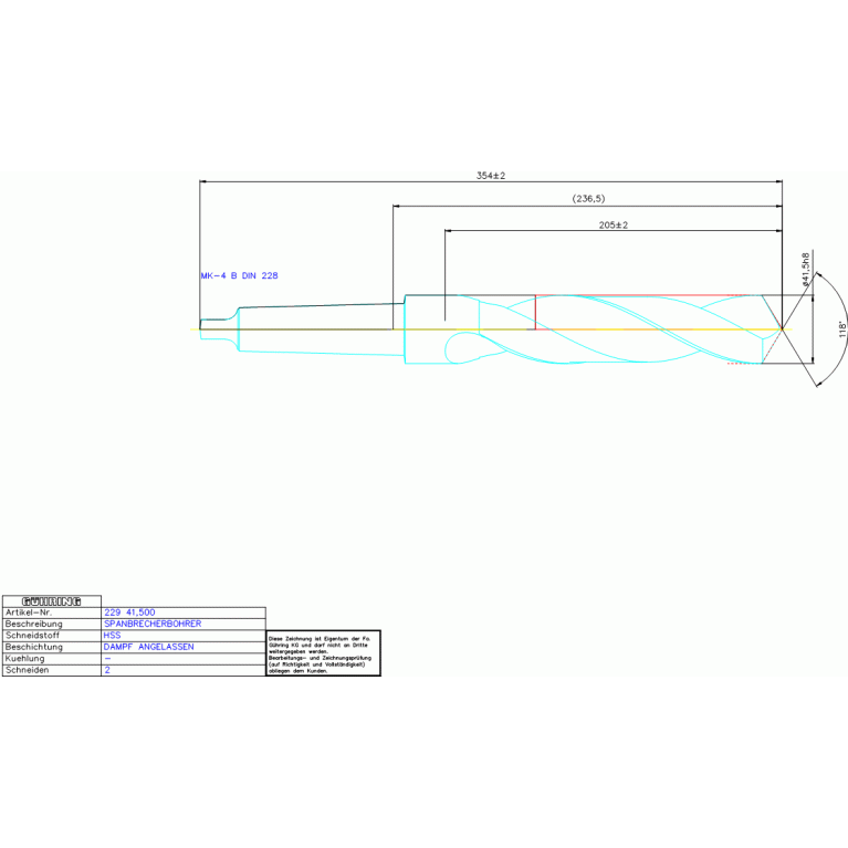 HSS SPIRALBOHRER 41,500 DIN 345RN MKSPAN