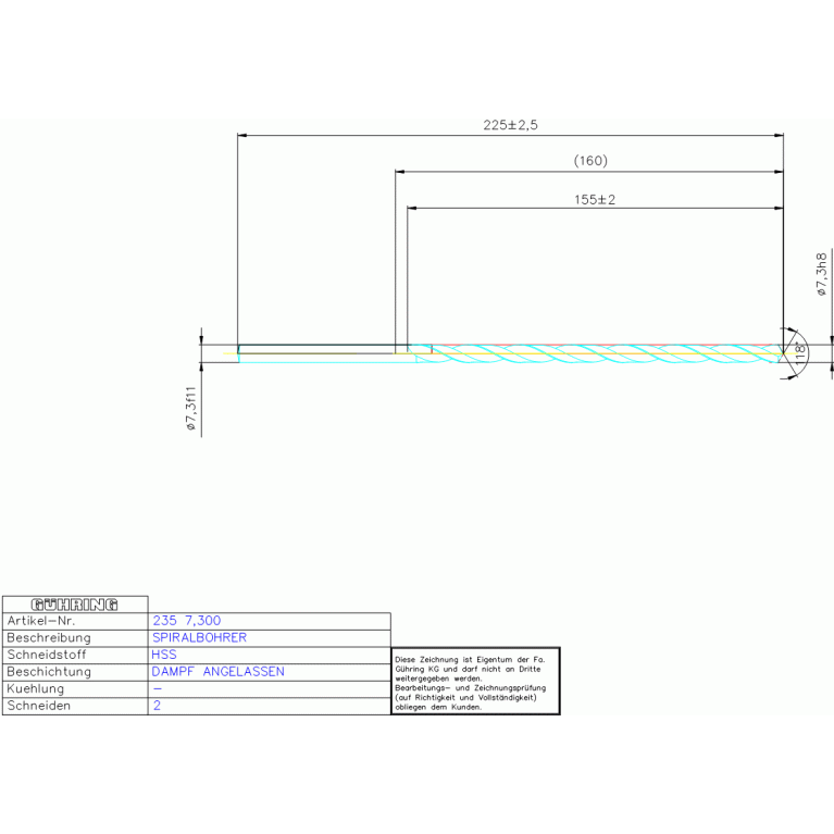 HSS SPIRALB, REIHE 1 7,300 DIN 1869RN ZY