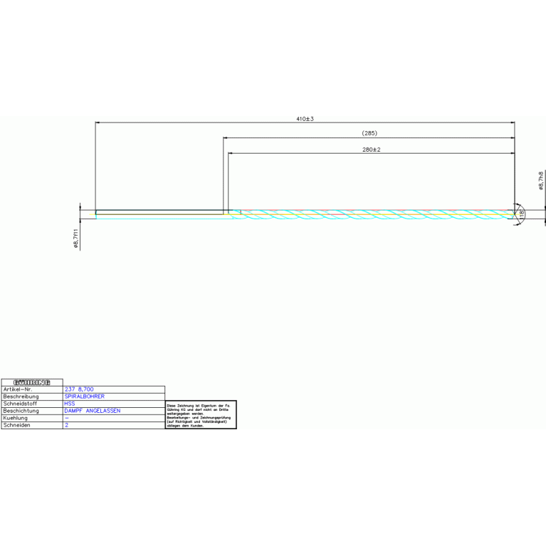 HSS SPIRALB, REIHE 3 8,700 DIN 1869RN ZY