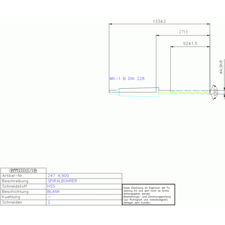 HSS SPIRALBOHRER 4,900 DIN 345RW MK