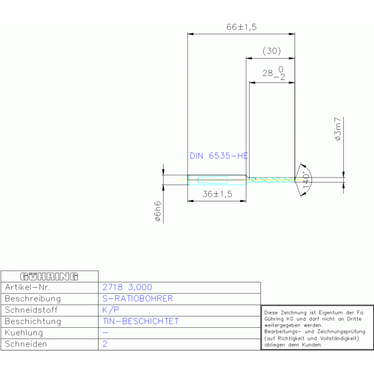 VHM S-RATIOBOH, RT100 U 3,000 DIN 6537L
